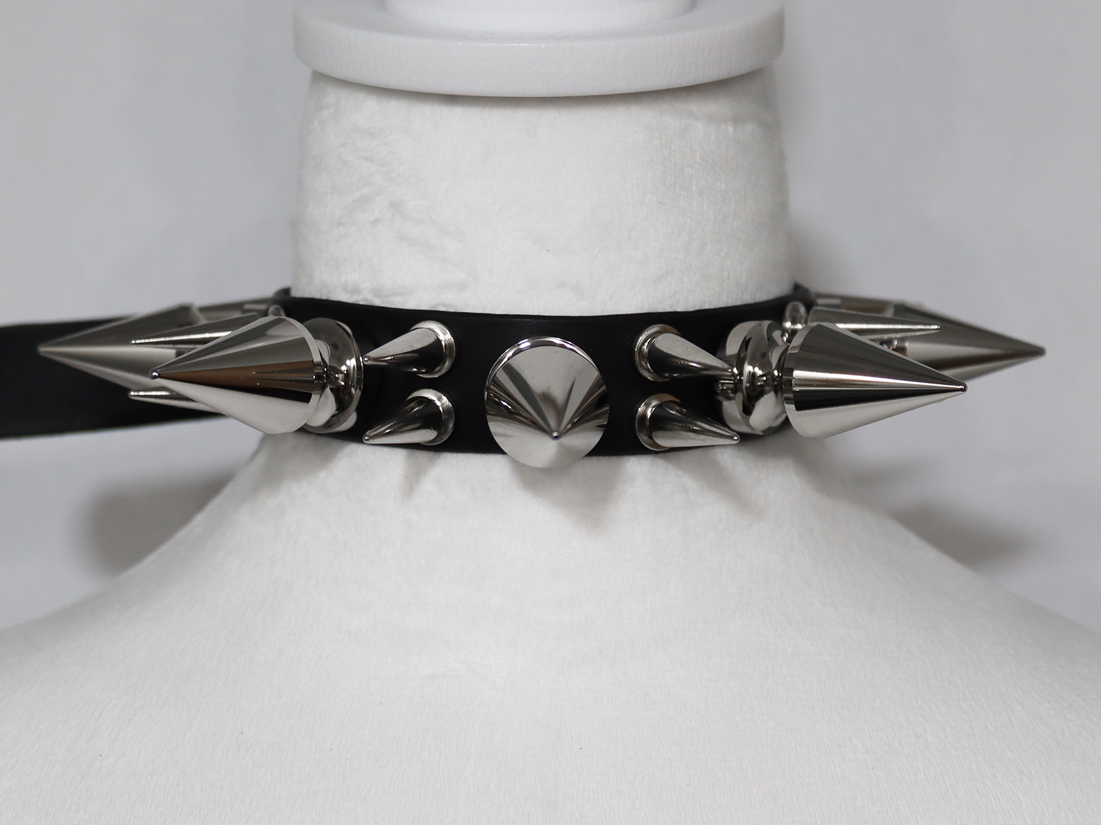 This choker is adorned with five lightweight 44mm spikes and twelve 29mm spikes.