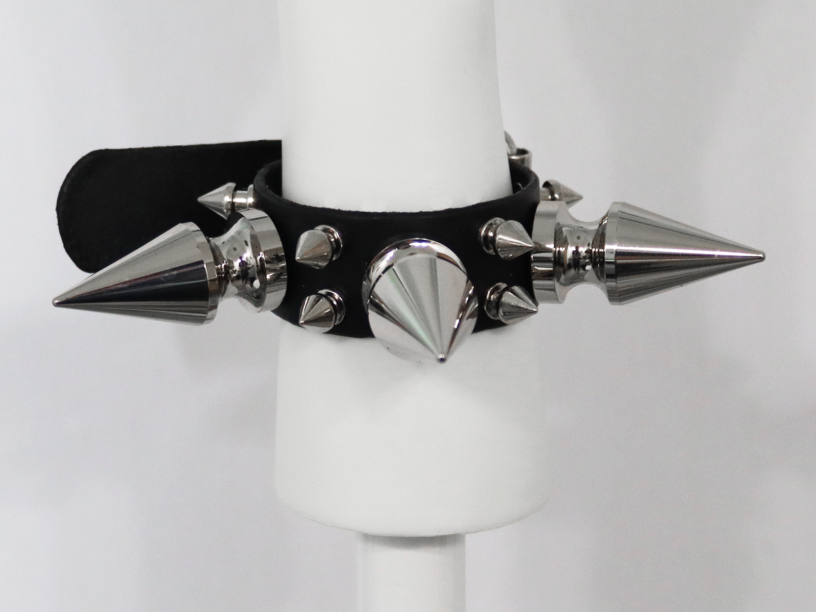 This cuff is adorned with three lightweight 44mm spikes and ten small tree spikes.