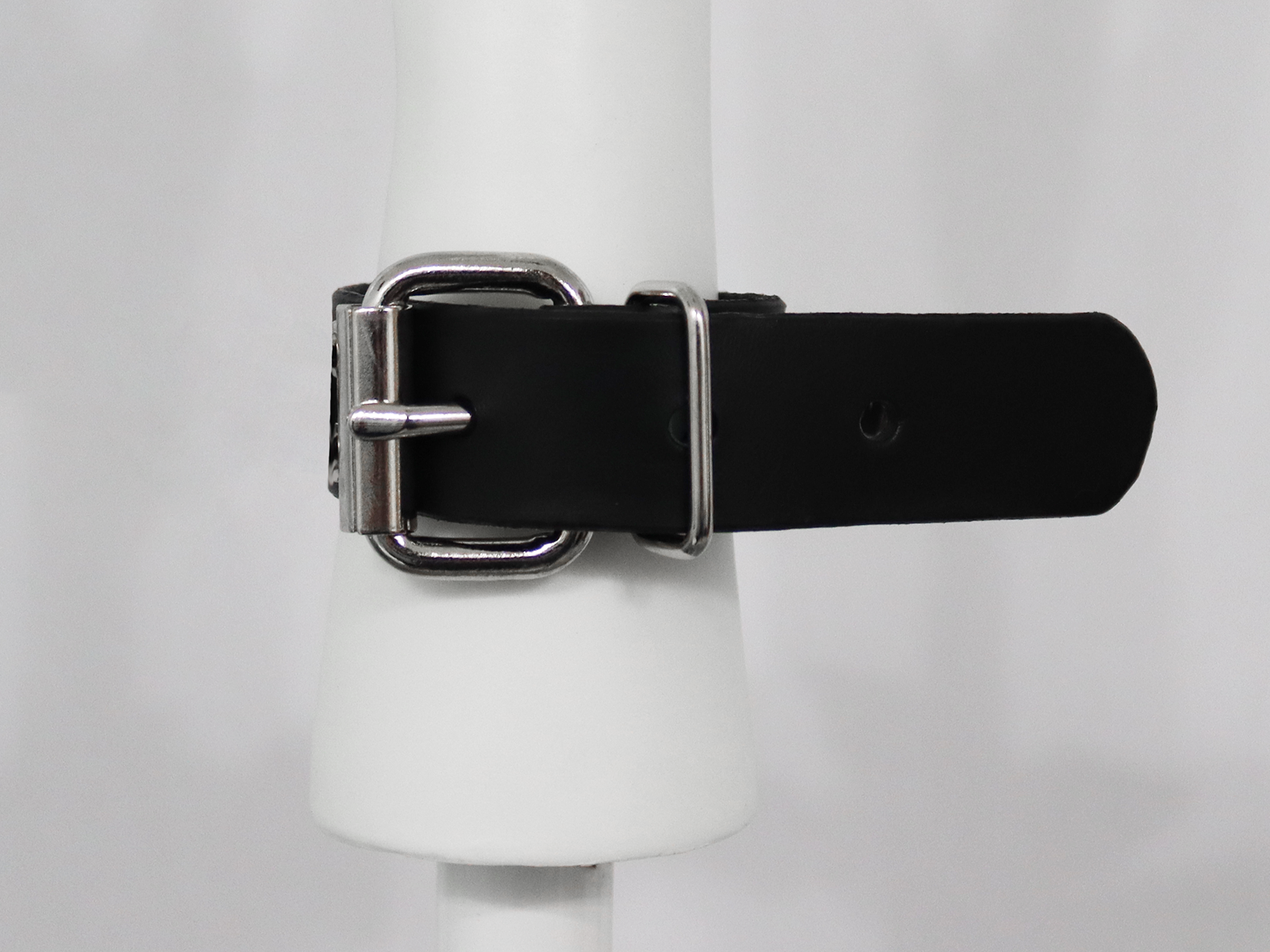 Asmodeus cuffs are always made from genuine veg tan cowhide leather with a thickness of 5-6 ounces (approximately 2-2.4mm). The leather is hand-cut and the edges are beveled and burnished which results in a rounded edge. Cuffs are assembled completely with steel rivets; no glue! Each cuff is finished with a heavy duty steel buckle. These cuffs are meant to be worn and last through standard wear and tear!